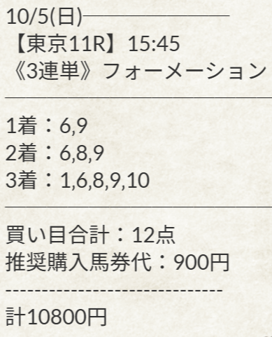 毎日王冠の無料情報当たりましたね! ありがとうございますm(__)m 横綱ダービーの的中率めちゃいいですよね♪