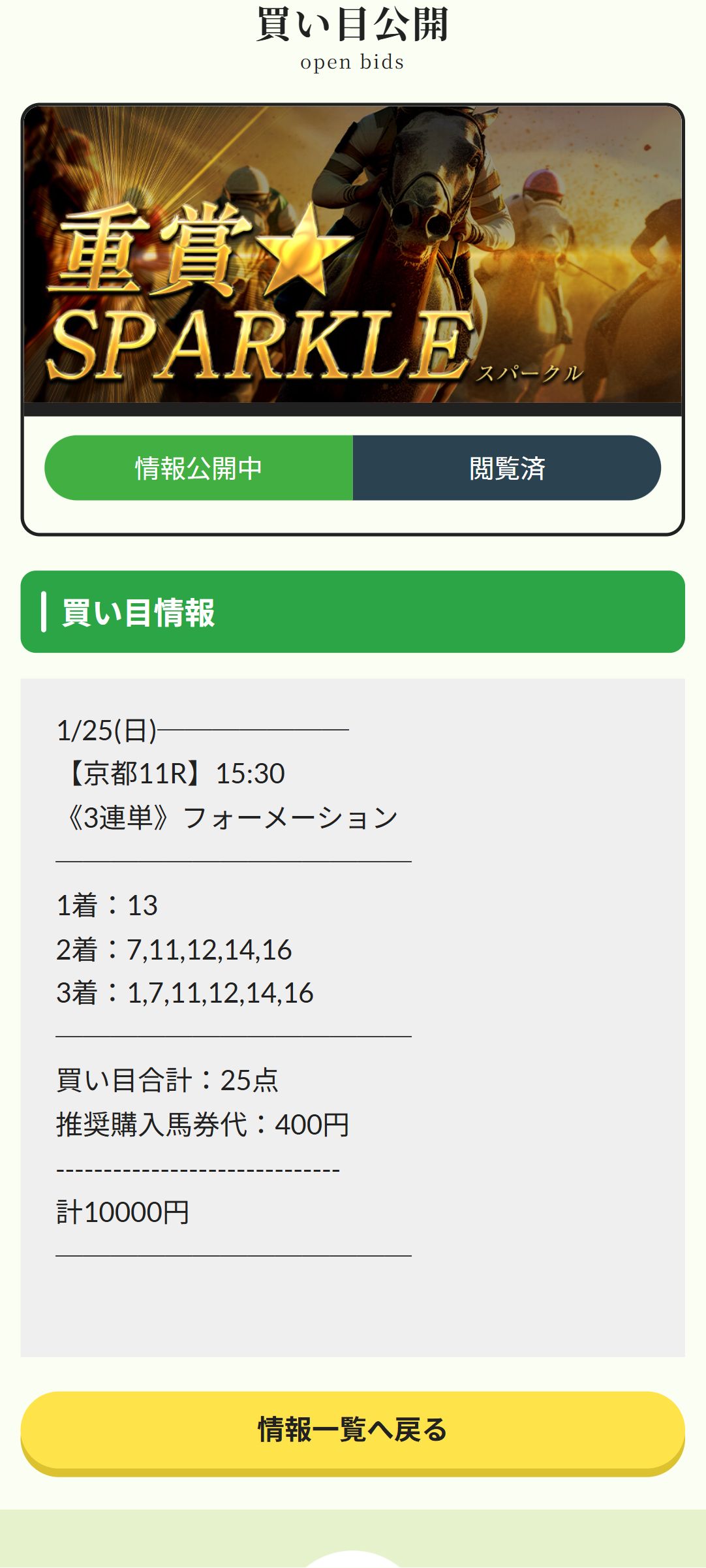 決して高配当とまでは(100万円以上)とはいきませんが 堅実的に10~20万円前後の配当的中してます。 今年、金杯開催週から3週連続で的中しているので明日も楽しみです、この一番新しい的中は27万3490円払い戻しでした。
