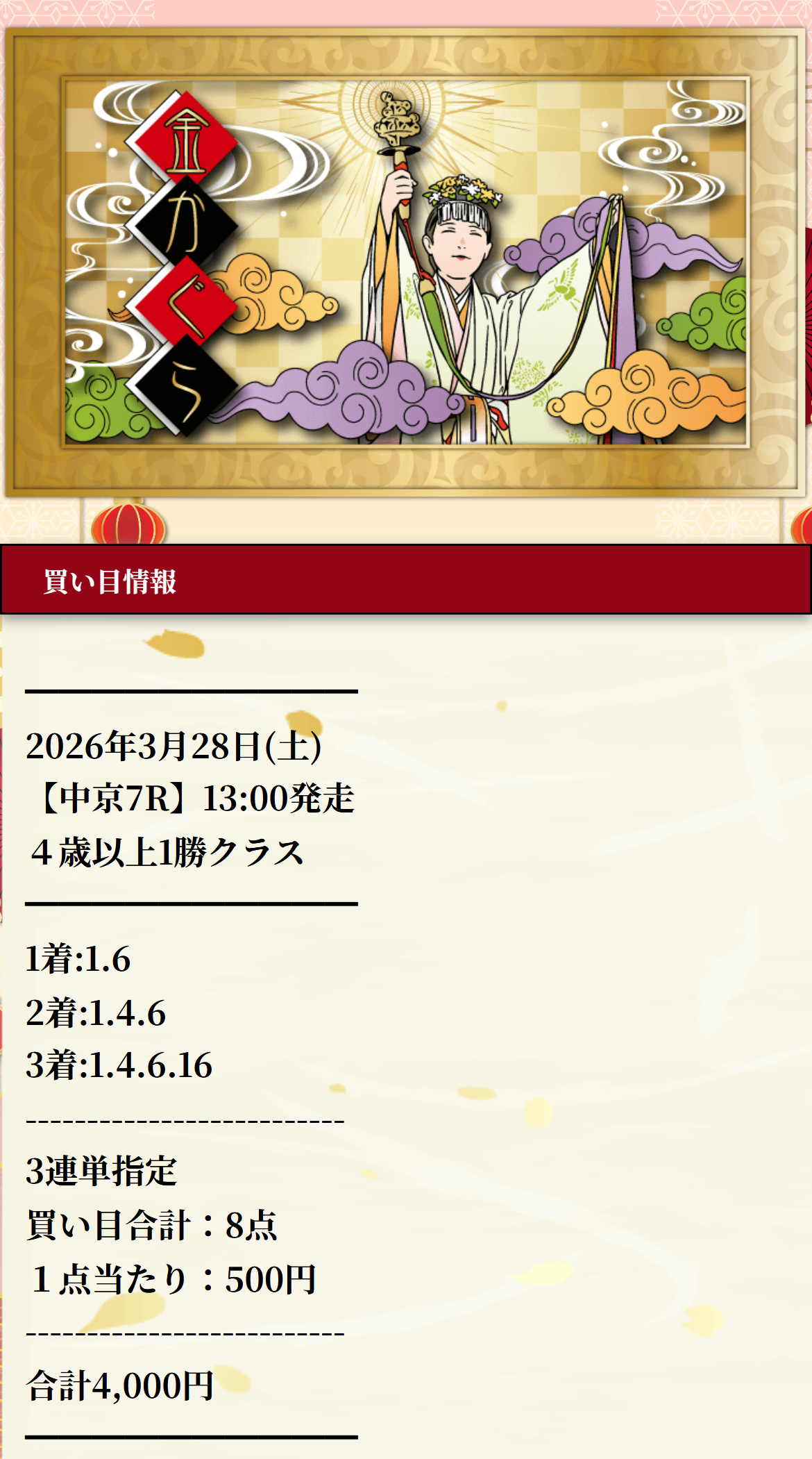 穴予想的中で40万4250円的中で十分嬉しいです