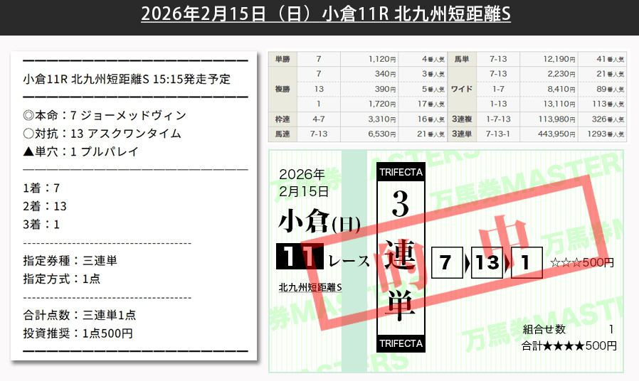 万馬券マスターズのサイト内にあったのスクショしてきたんだけど小倉メインでえぐすぎる的中させてる。