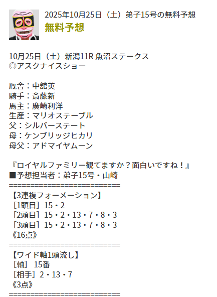 これは難しいですわ・・・ むしろとれたら最高だったな この予想で外れたけどね・・・